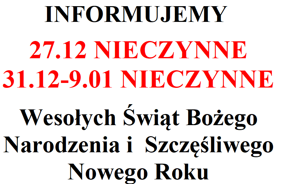 View Larger Image Dni wolne robi2025-12-19T11:05:28+01:0019 grudnia, 2025| Podziel się tą informacją ze znajomymi! facebooktwitterwhatsappEmail
